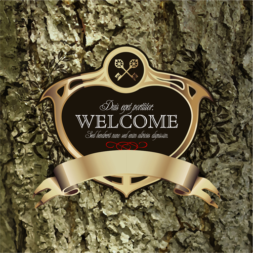 Name: Luxury business labels with old bark background vector 07