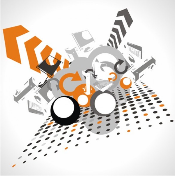 Grunge orange and grey abstract with circles and arrows vector background in eps, ai and cdr formats.