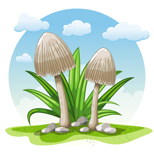 Free EPS file Mushrooms and cloud white round background vector 02 download