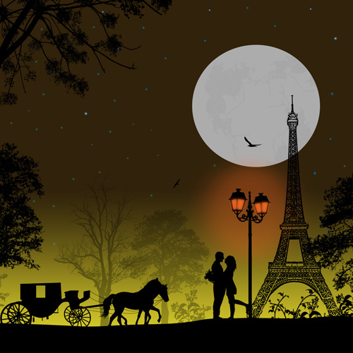 Free EPS file Night paris with lovers vector set 19 download