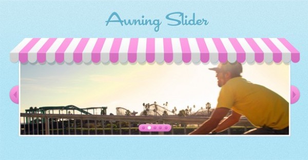 Pink and blue awning web UI image slider in PSD. Perfect slider for a cupcake shop or clothing store.