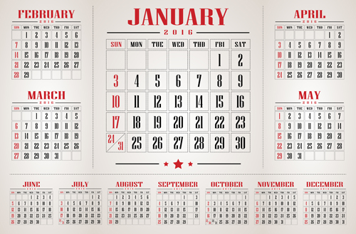 Free EPS file Retro 2016 calendars design vector material 02 download