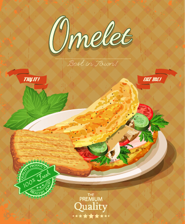 Name: Retro advertising poster omelet food vector 02