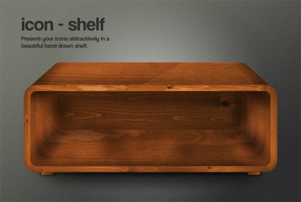 Elegant wooden shelf icon for your displays. With lights or without. PSD format.