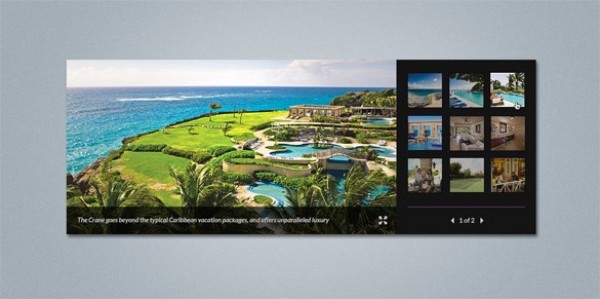 Attractive photo gallery slider with thumbnails – features a pagination slider that allows you to display many images. PSD