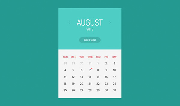 Sweet and simple flat calendar widget in PSD.