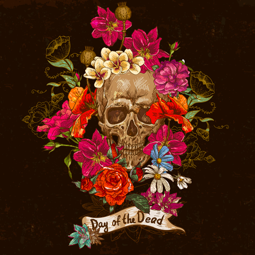 Free AI ,EPS file Skull and poppies vector background 02 download