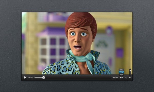 Dark and slick web UI video player in PSD.