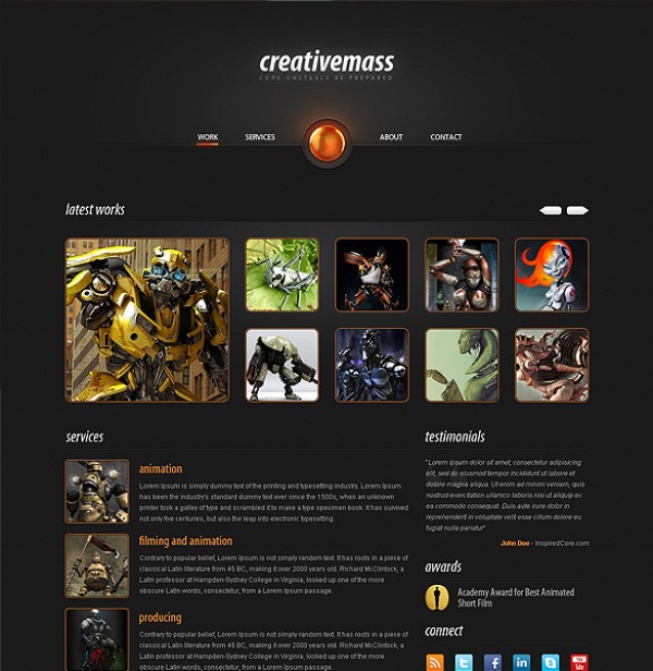 Stunning One-Paged Website Portfolio Template with orange unstable core.