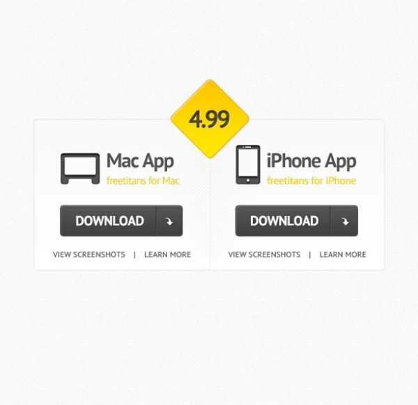 Stylish and clean window which contains two sections, one for a iPhone app download option and one for a Mac app download option. PSD