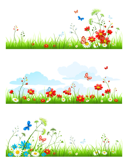 Name: Summer flower with butterflies nature elements vector 02