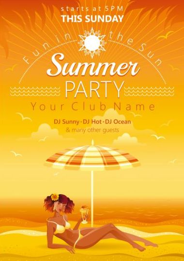 Free EPS file Summer party flyer with beautiful girl vector 01 download