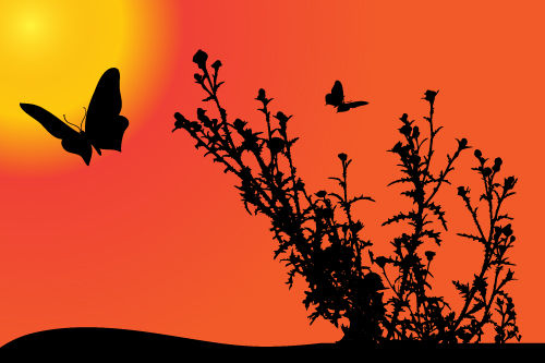 Free EPS file Sunset with butterfly silhouette vector material 05 download