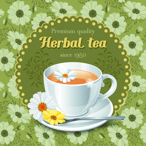 Free EPS file Tea cup and elegant floral background vector 02 download