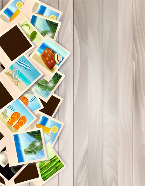 Free EPS file Travel wooden background with photos vector download