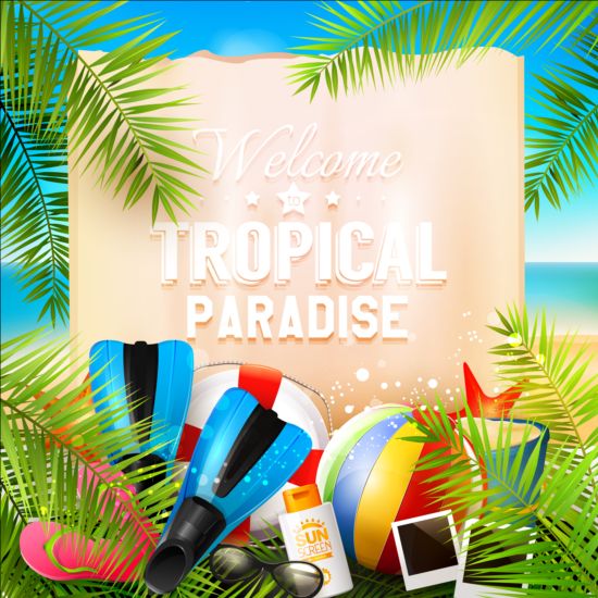 Free EPS file Tropical paradise summer holiday and paper background vector 05 download