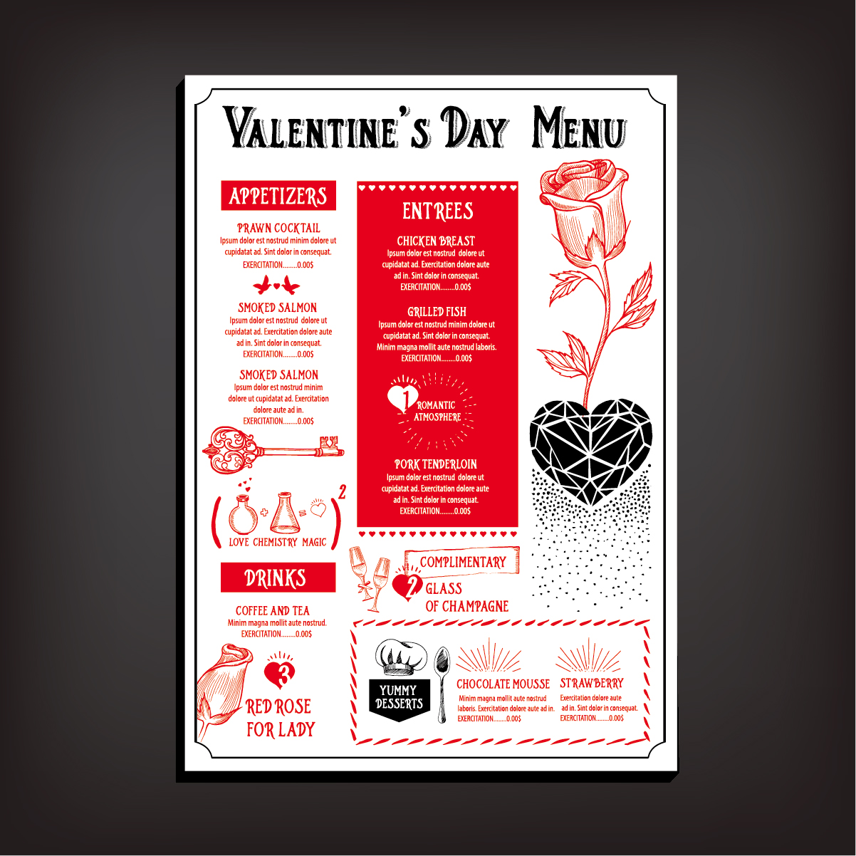Free EPS file Valentines day restaurant menu vintage vector 08 download