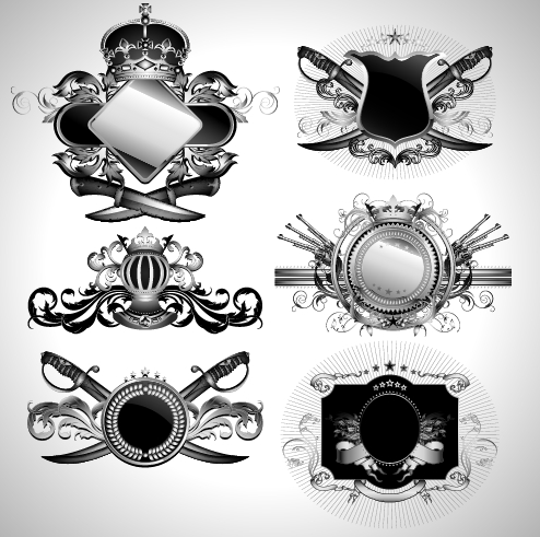 Free EPS file Vintage black and white badge with heraldry vector set 06 download