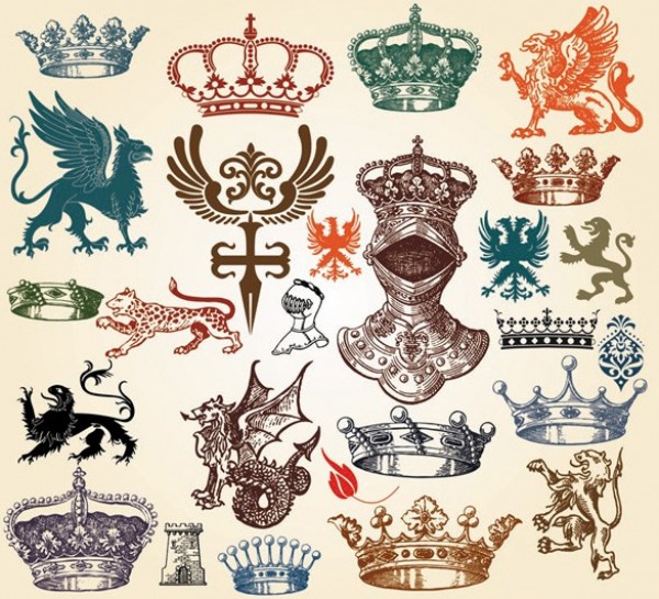 Large collection of vintage heraldry and decorative vector elements.