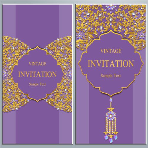 Free EPS file Vintage invitation cards with jewelry decor vector 02 download