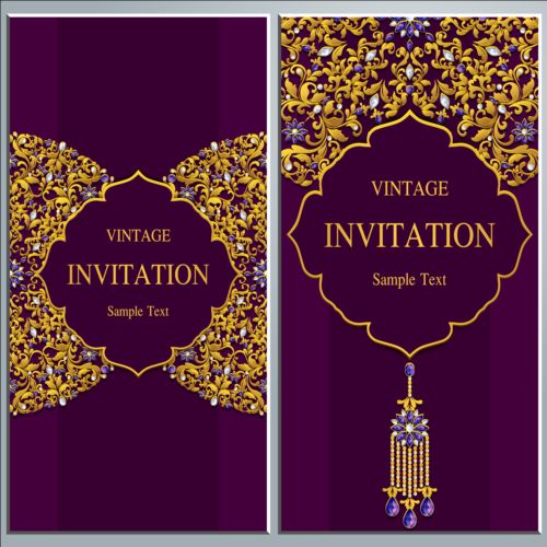 Free EPS file Vintage invitation cards with jewelry decor vector 03 download