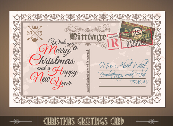 Name: Vintage merry christmas postcard vectors tamplate 01