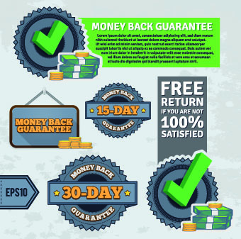 Free EPS file Vintage money back guarantee labels vector 02 download